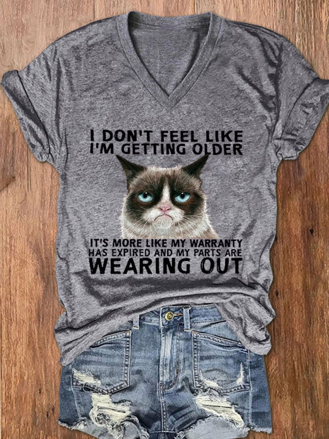 Women's Funny Cat I Don't Feel Like I'm Getting Older Casual V-Neck Tee