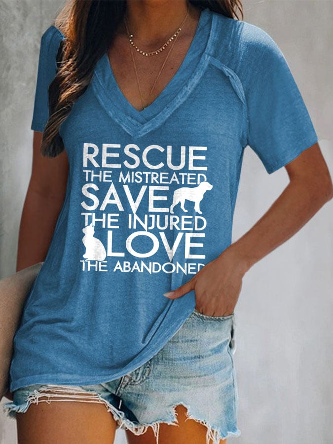 V Neck Retro Dog Rescue The Mistreated Save The Injured Love The Abandoned Print T-Shirt