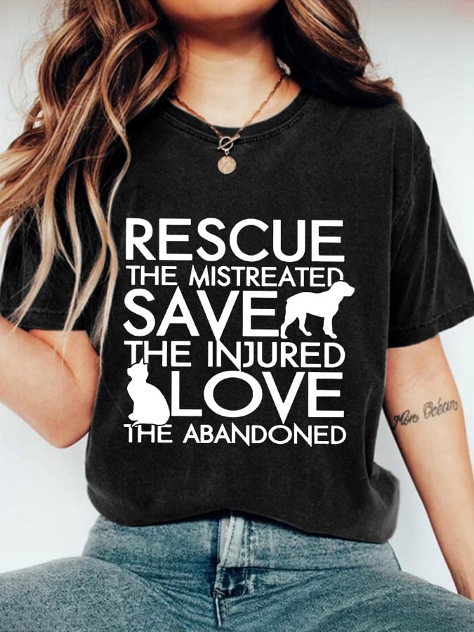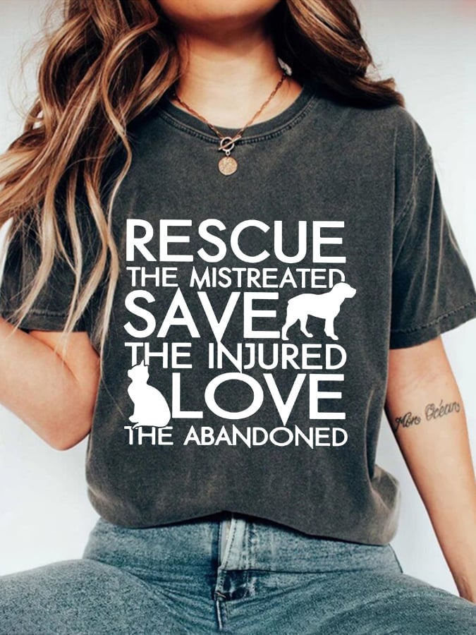 Retro Dog Rescue The Mistreated Save The Injured Love The Abandoned Print T-Shirt