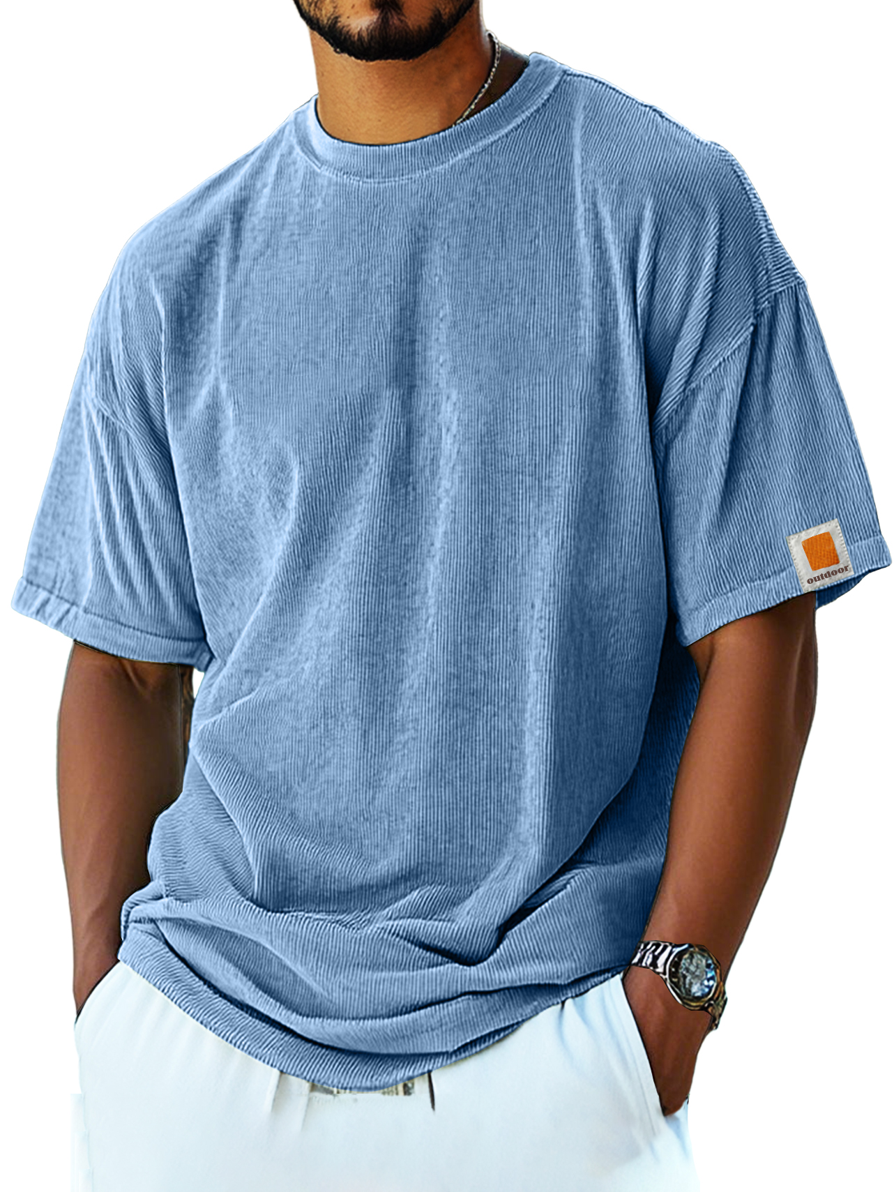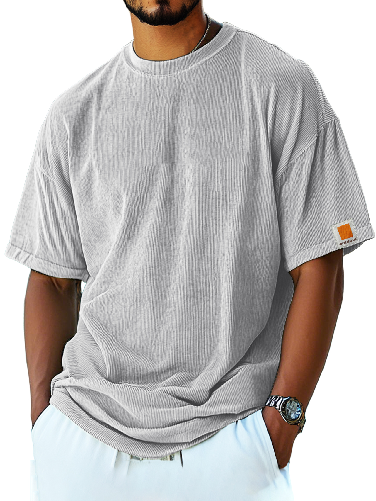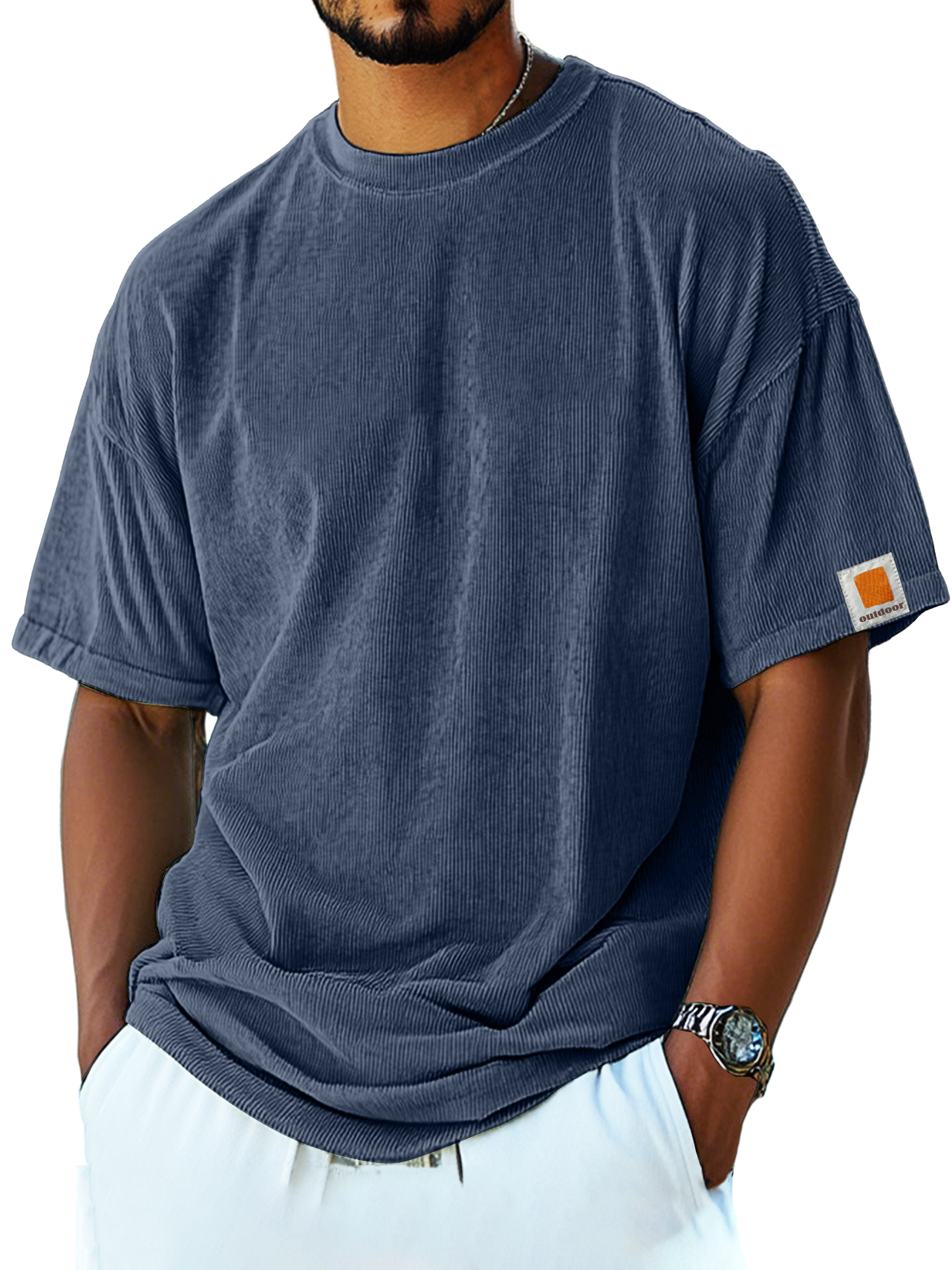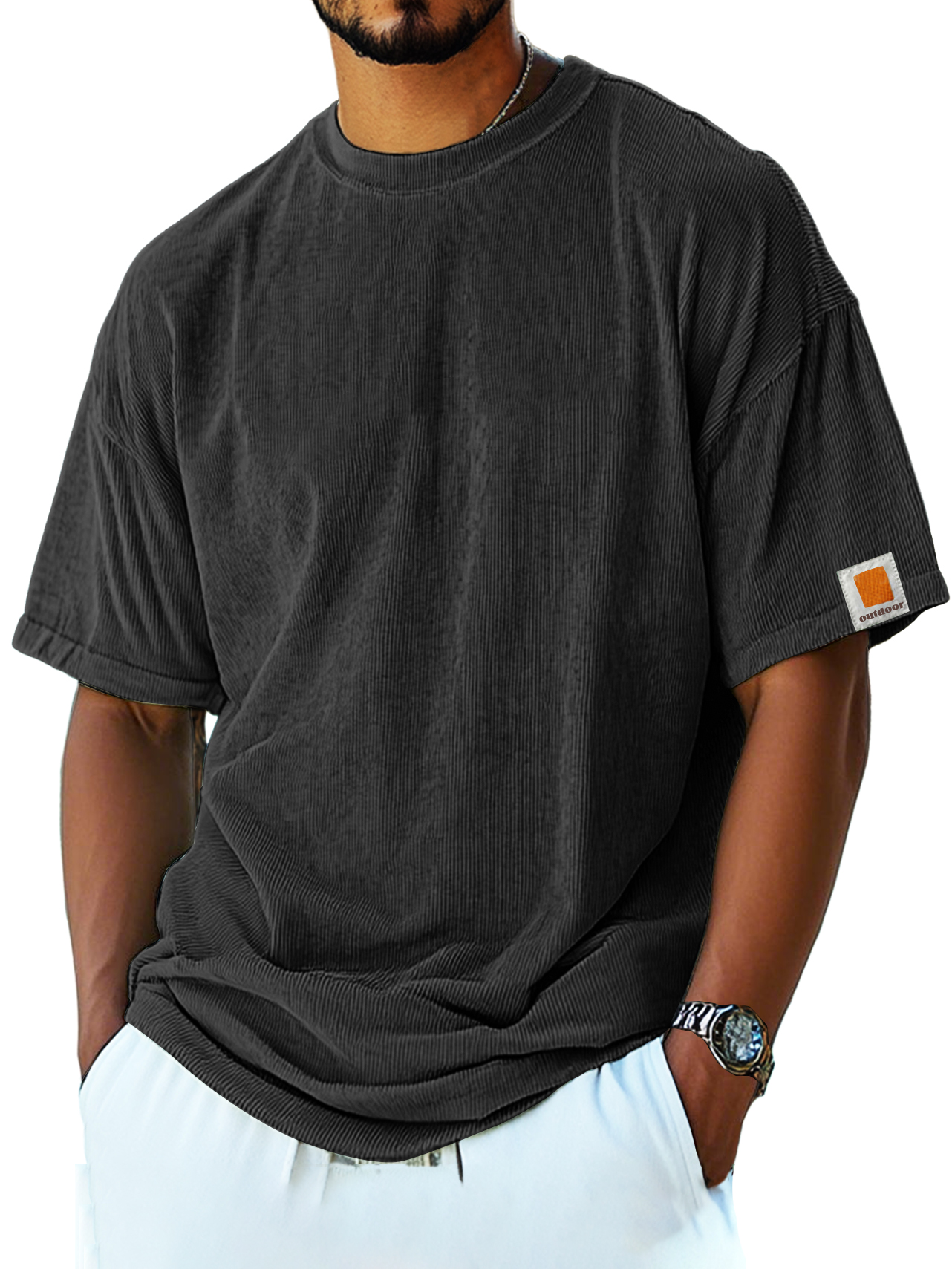 Men's Retro Fashion Corduroy Simple Short-sleeved T-shirt