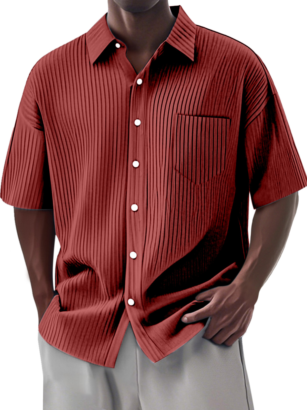 Men's Simple Daily Solid Color Vertical Pit Lapel Short-sleeved Shirt