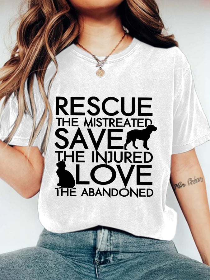 Retro Dog Rescue The Mistreated Save The Injured Love The Abandoned Print T-Shirt